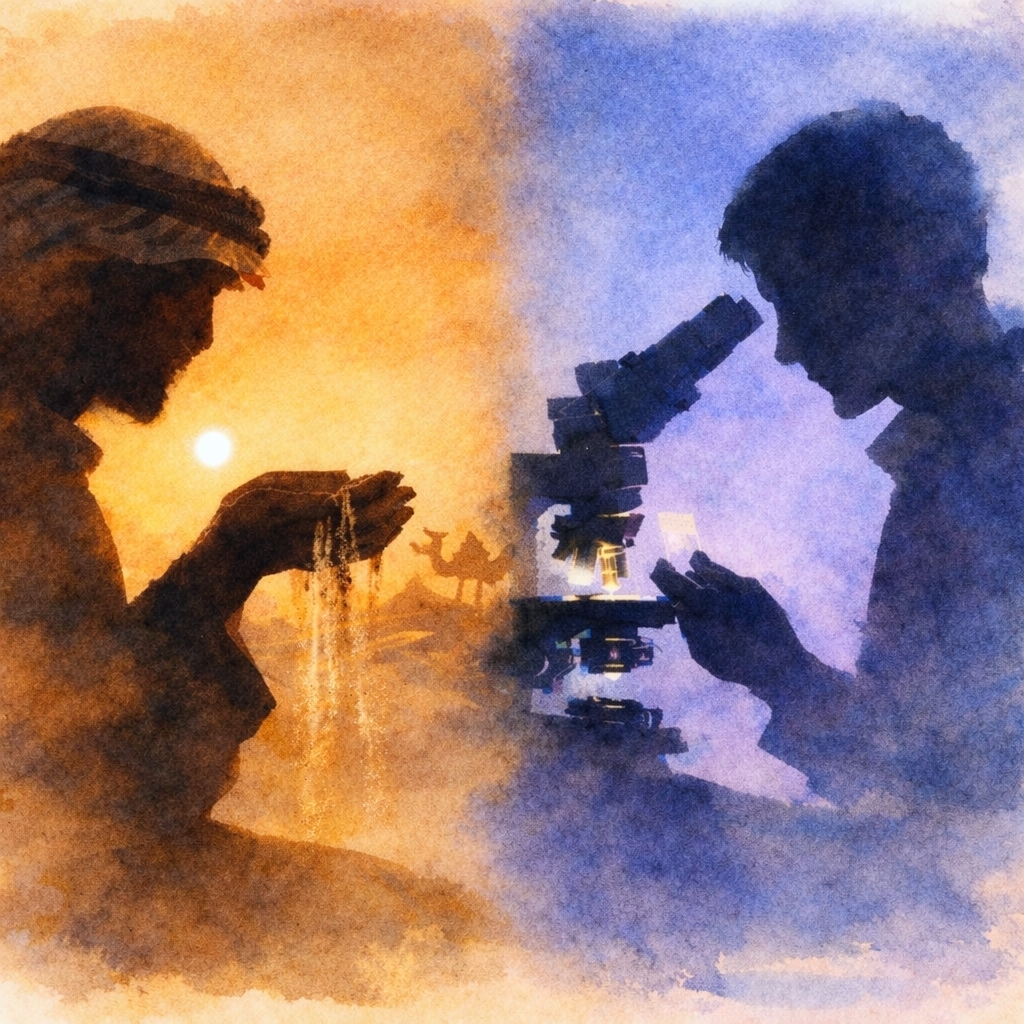 توضيح بساطة الأدلة الإيمانية بين فطرة الأعرابي ودقة المختبرات الحديثة، وكيف أن جحودها ينبع من الكبر لا من نقص المعرفة.